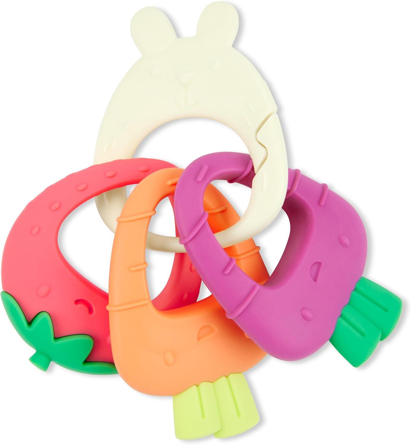 Skip Hop Soft Silicone Baby Teething Ring Toys Farmstand Teethe & Play Toy Set of 4, BPA-Free, Age 3m+(Broccoli Stroller Toy)