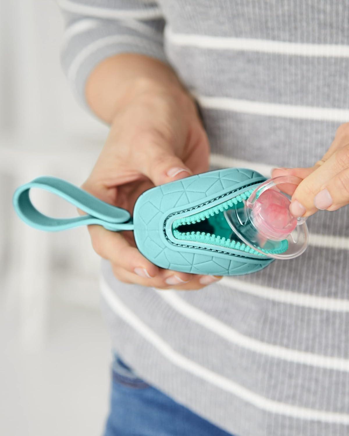 Skip Hop Baby Silicone Pacifier Holder Case with Easy-Access Opening and Strap, Fits 2 Pacifiers, Oat(Light Teal)