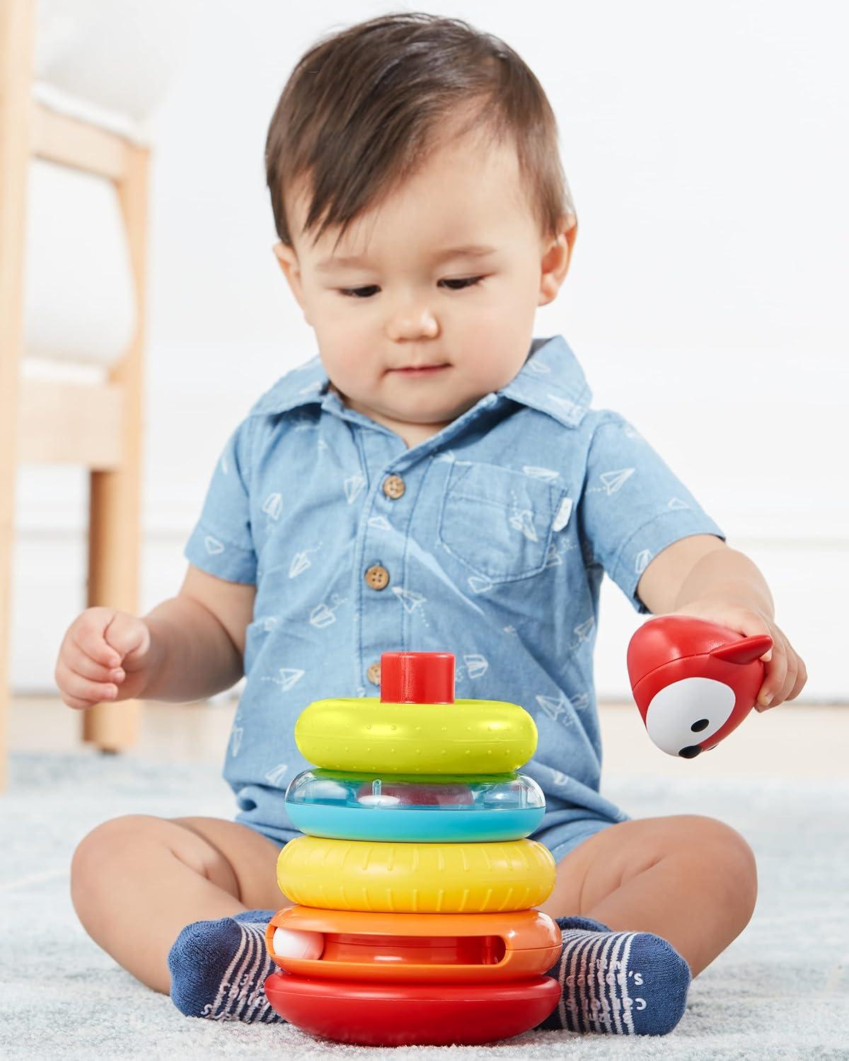 Topped with a cute Fox friend and a rocking base, baby will love to grab and stack the four colorful rings