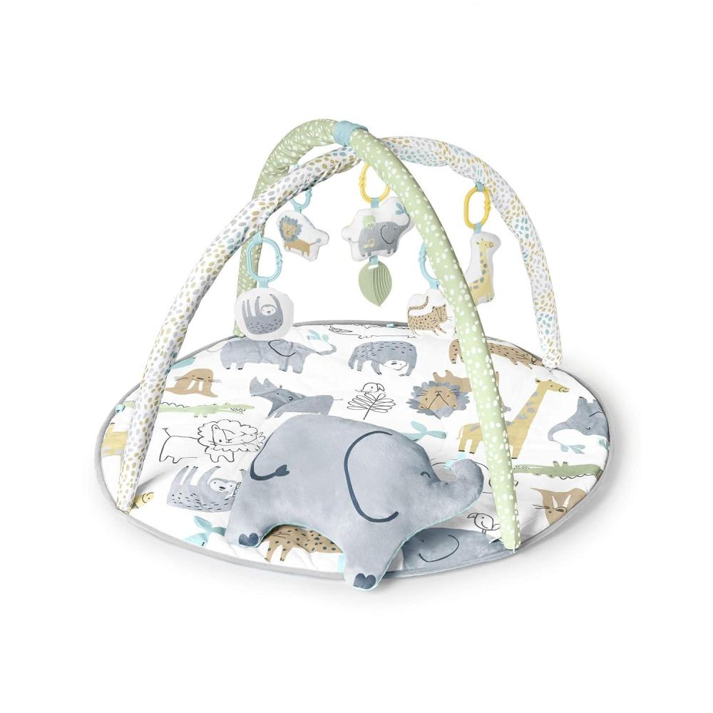 A safari adventure for baby, Carter’s adorable play gym features a soft play mat with jungle animals and an elephant pillow for tummy time play