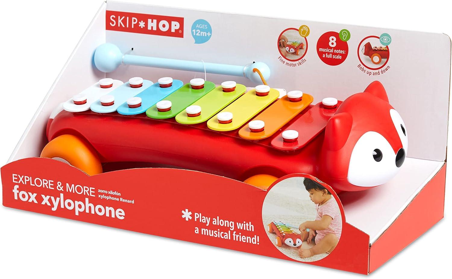 Skip Hop Musical Baby Toy with Sounds Lights and Music, Farmstand Feelin’ Clucky Tambourine, Age 9m+(Xylophone Toy)